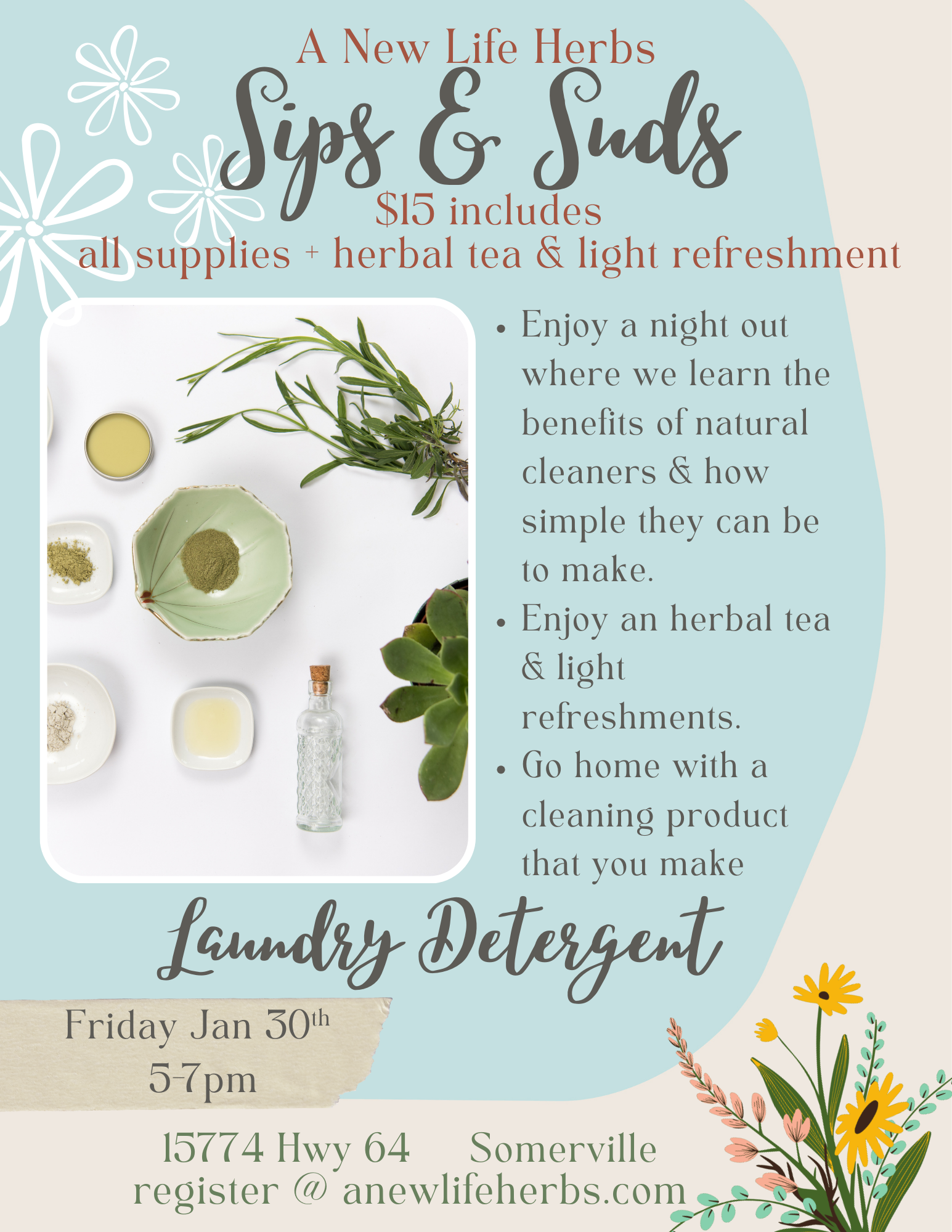 Sips & Suds Homemade Cleaner Class Feb 20th 5-7